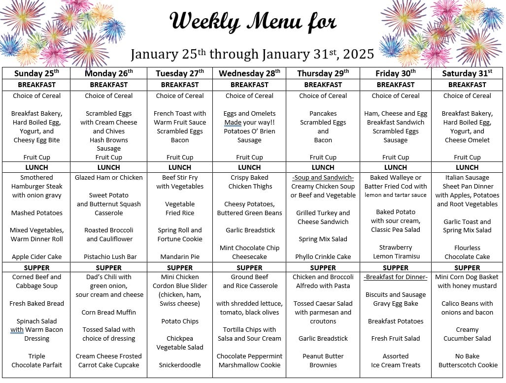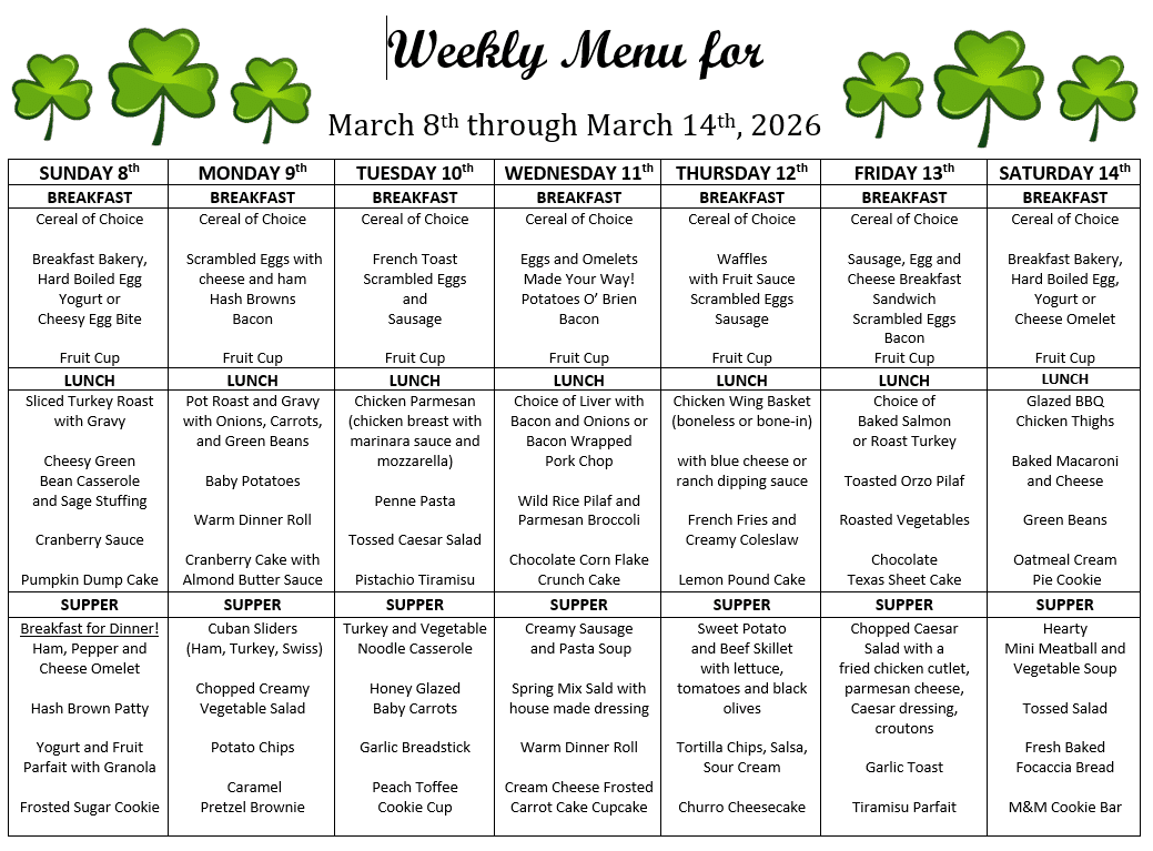 (All activities are optional and subject to change based on the resident’s needs)